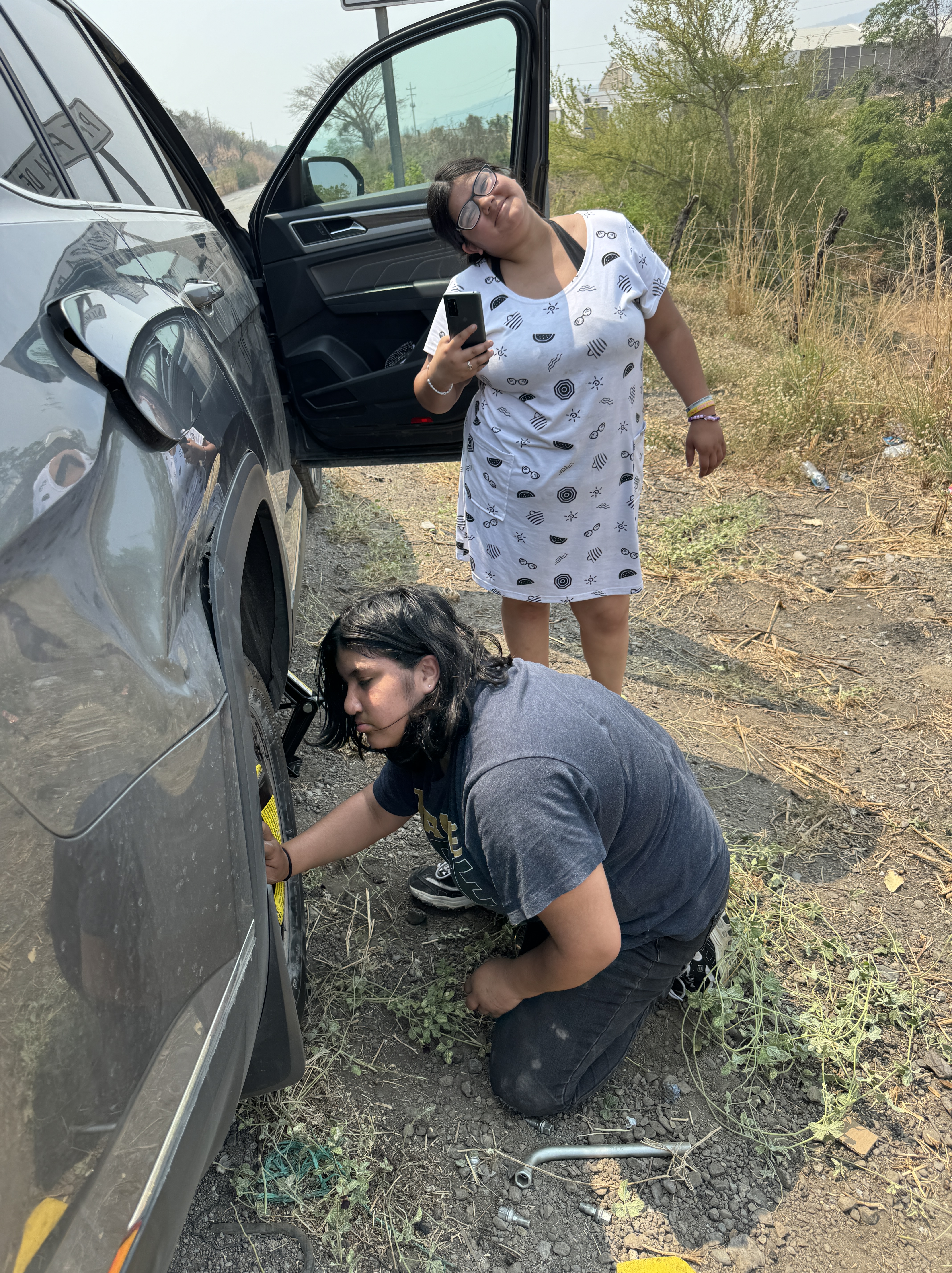 - We had flats on the trailer and our car.